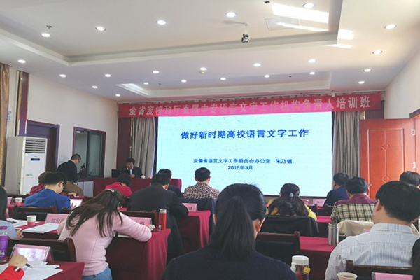 培训会上,来自安徽大学、淮北师范大学等五所院校的代表们,以不同类型的学校为案例,交流了高校语言文字工作的典型做法和经验。安徽省语言文字工作委员会办公室对目前高校语言文字达标建设体系及细则做了专业化解读。与此同时,会议还进一步明确了安徽省高校语言文字工作的形势、主要任务和工作要点,并对2018年高校语言文字的下一步工作进行了部署。