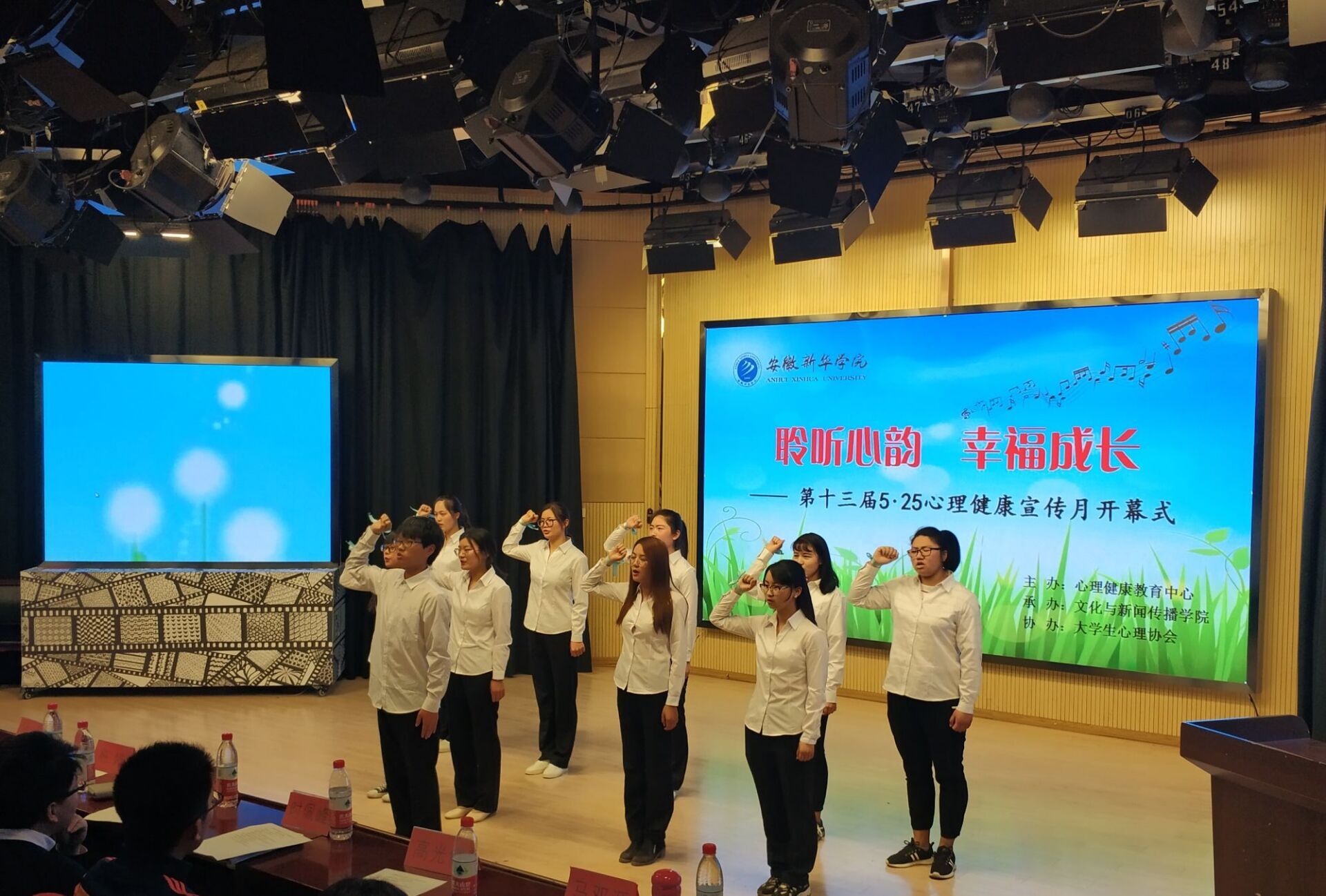 大学生心理协会以青春活力、传播正能量的形象进行的手语操表演,为开幕式拉开了序幕。随后,凌晨介绍了本次“5.25”心理健康宣传月的各项活动安排:学工人员心理工作培训、心理手抄报展、系列团体辅导活动、校园心理情景剧大赛等。