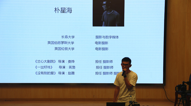朴星海从对电影摄影行业现状的分析展开了此次演讲。他讲述了导演、制片人、摄影指导等电影主创的基本职能,电影制作过程中各部门分工及工作流程,介绍了专业的摄影机器的基本用法,4K分辨率在当今制作环境中的应用及未来并将HD、720P、4K、8K等分辨率进行了对比等内容。此外,他就自己在拍摄《一出好戏》和《兰心大剧院》的过程中获得的经验进行了分享。最后,与学生们就长镜头的拍摄方式、杜比音效等问题进行了探讨。
