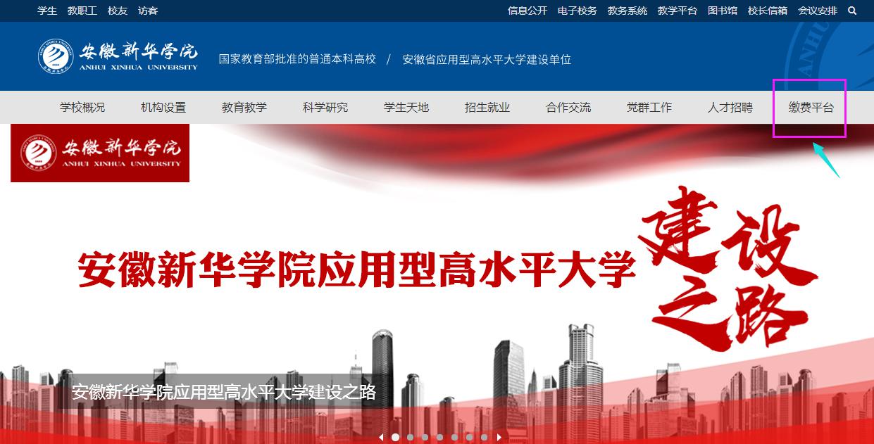 (1) 打开pp电子官方网站官网(http:),点击“缴费平台”。(参考下图)