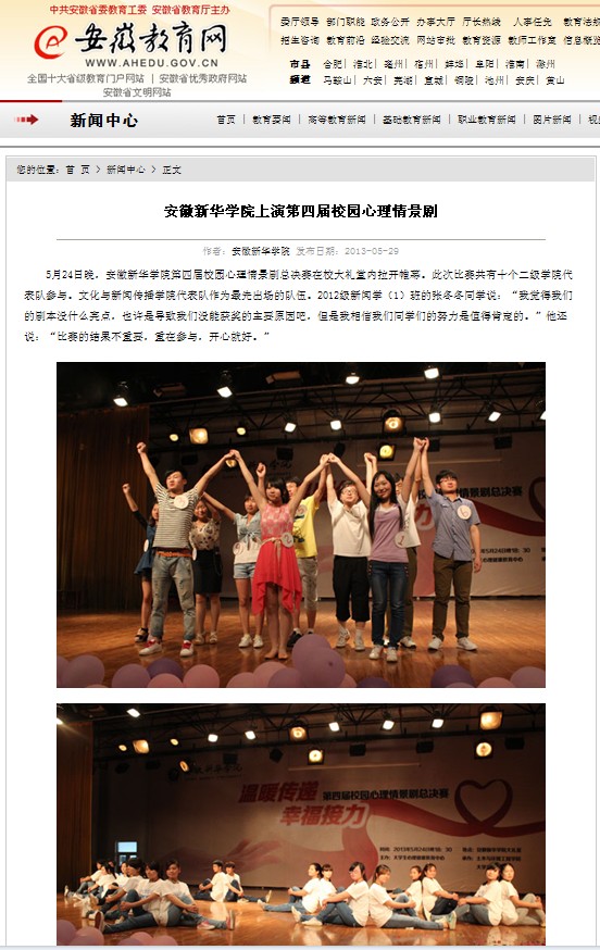 安徽教育网:pp电子官方网站上演第四届校园心理情景剧