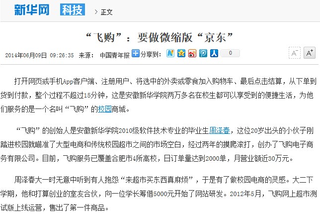中国青年报:“飞购”:要做微缩版“京东”