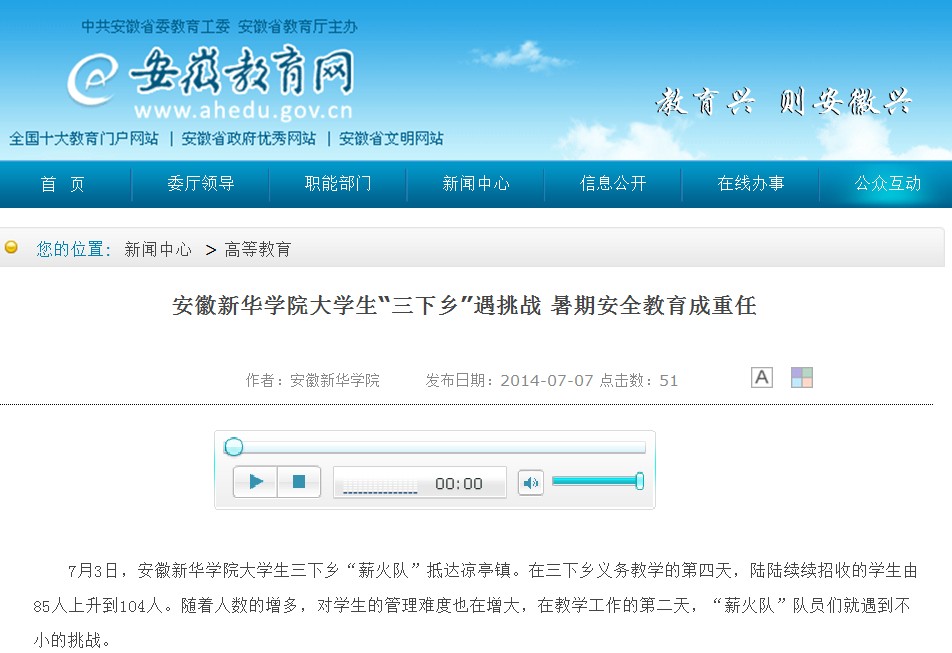安徽教育网:pp电子官方网站大学生“三下乡”遇挑战 暑期安全教育成重任