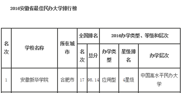 在2016中国最佳民办大学排行榜中,pp电子官方网站问鼎2016安徽省最佳民办大学排行榜榜首,全国排名第17,荣膺2016中国四星级民办大学,入选中国高水平民办大学,堪称2016安徽省最佳民办大学。
