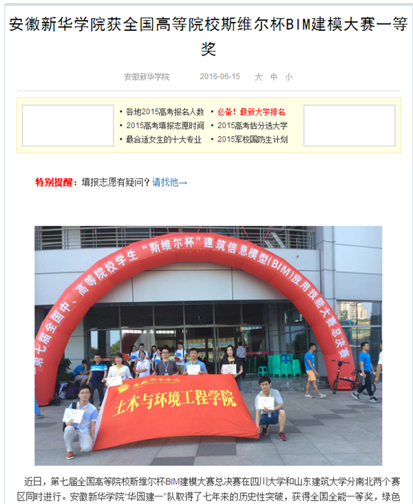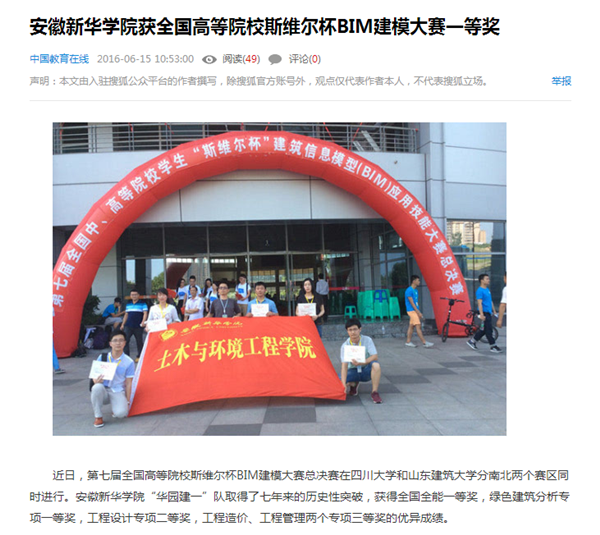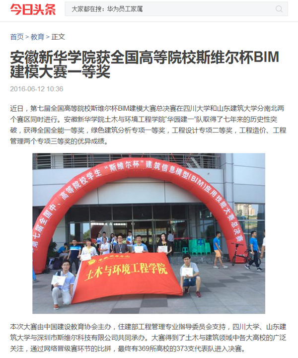 中国教育在线、搜狐网、今日头条、万家热线:pp电子官方网站获全国高等院校斯维尔杯BIM建模大赛一等奖