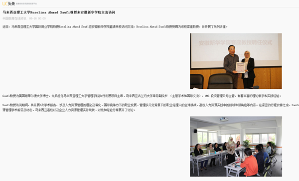 中国教育在线、UC头条:马来西亚理工大学Roselina Ahmad Saufi教授来pp电子官方网站交流访问
