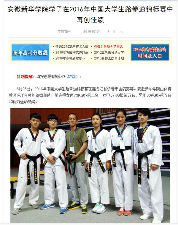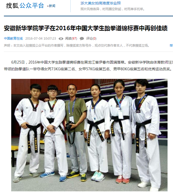 中国教育在线、搜狐网:pp电子官方网站学子在2016年中国大学生跆拳道锦标赛中再创佳绩