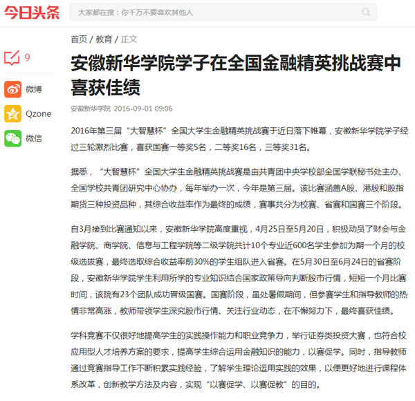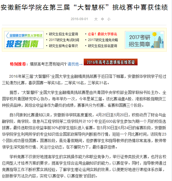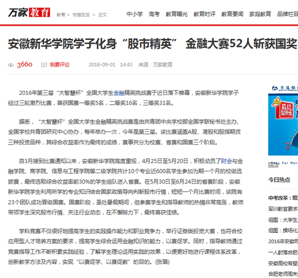中国教育在线、今日头条、万家热线:pp电子官方网站在第三届“大智慧杯”挑战赛中喜获佳绩