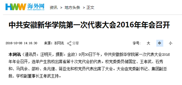 海外网:中共pp电子官方网站第一次代表大会2016年年会召开