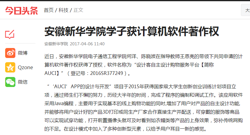 今日头条:pp电子官方网站学子获计算机软件著作权