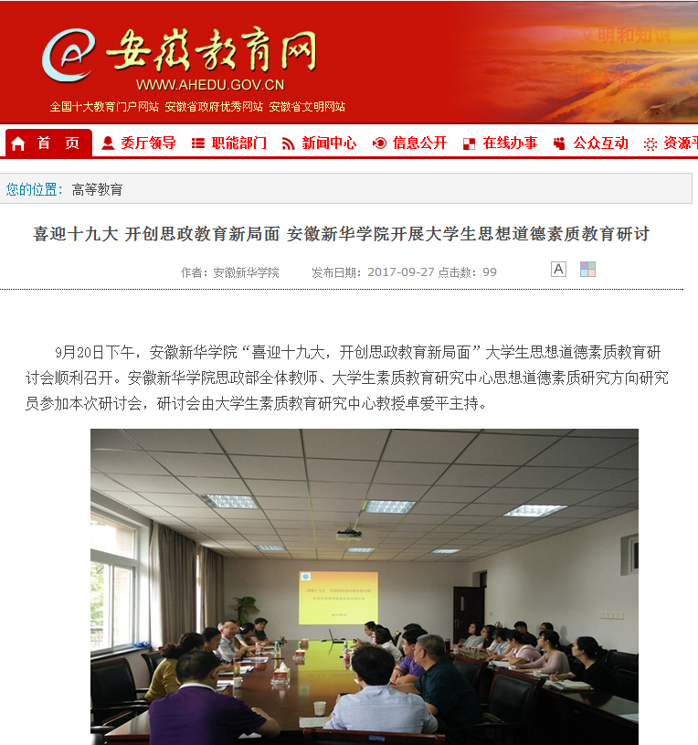 安徽教育网:喜迎十九大 开创思政教育新局面 pp电子官方网站开展大学生思想道德素质教育研讨