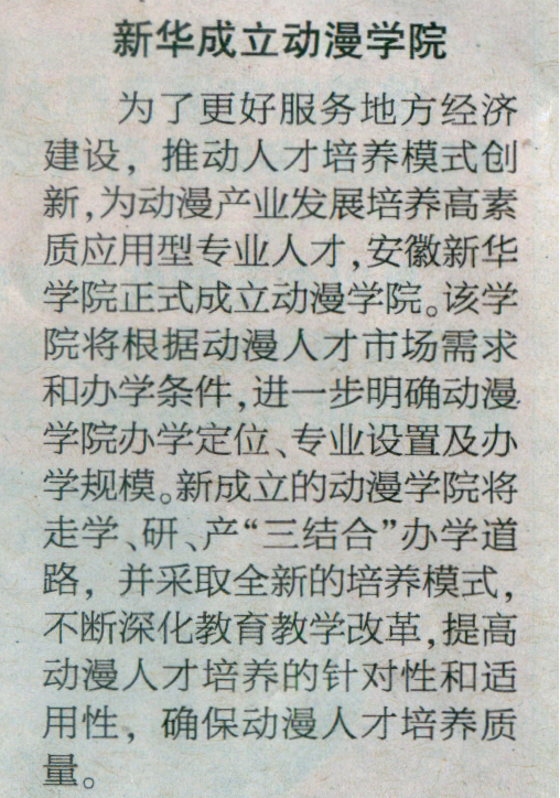 《新安晚报》:新华成立动漫学院