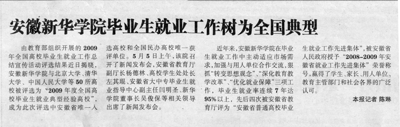 2010年5月20日,工商导报C13就业版对我院入选全国毕业生就业典型经验高校一事进行了报道。