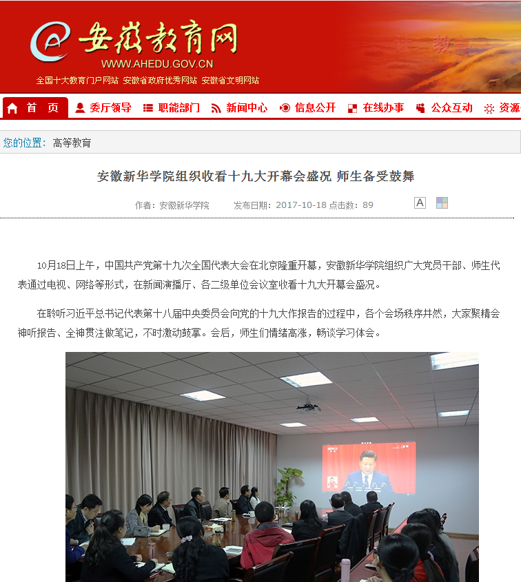 安徽教育网:pp电子官方网站组织收看十九大开幕会盛况 师生备受鼓舞