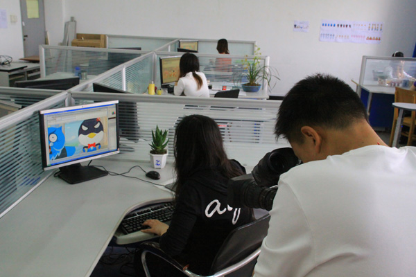 正逢动漫学院成立一周年,4月26日,安徽电视台公共频道《新闻第一线》栏目组到动漫学院拍摄素材,报道我院动漫制作流程和动漫专业发展情况,并在当晚的《新闻第一线》栏目播出。图为拍摄现场。