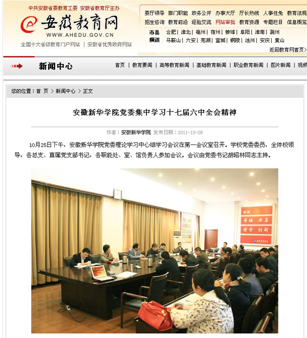 安徽教育网首页报道pp电子党委学习十七届六中全会精神