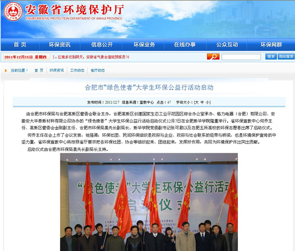安徽省环保厅网站报道合肥市大学生环保公益行在pp电子启动