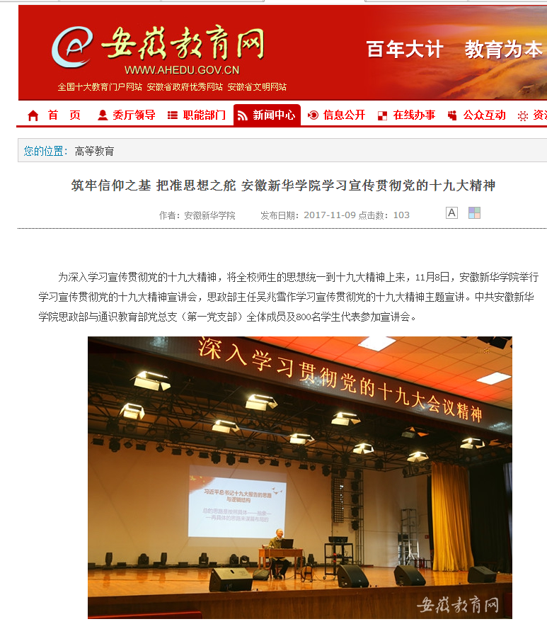 安徽教育网:筑牢信仰之基 把准思想之舵 pp电子官方网站学习宣传贯彻党的十九大精神